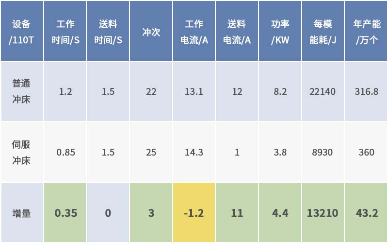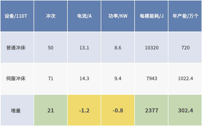 伺服沖床與普通沖床效率及能耗對比: